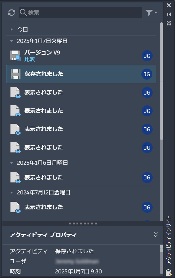 アクティビティ インサイトは、各メンバーの更新内容を図面ファイルに記録し、コラボレーションを合理化します。また、中断した時点から再開できるようにします。