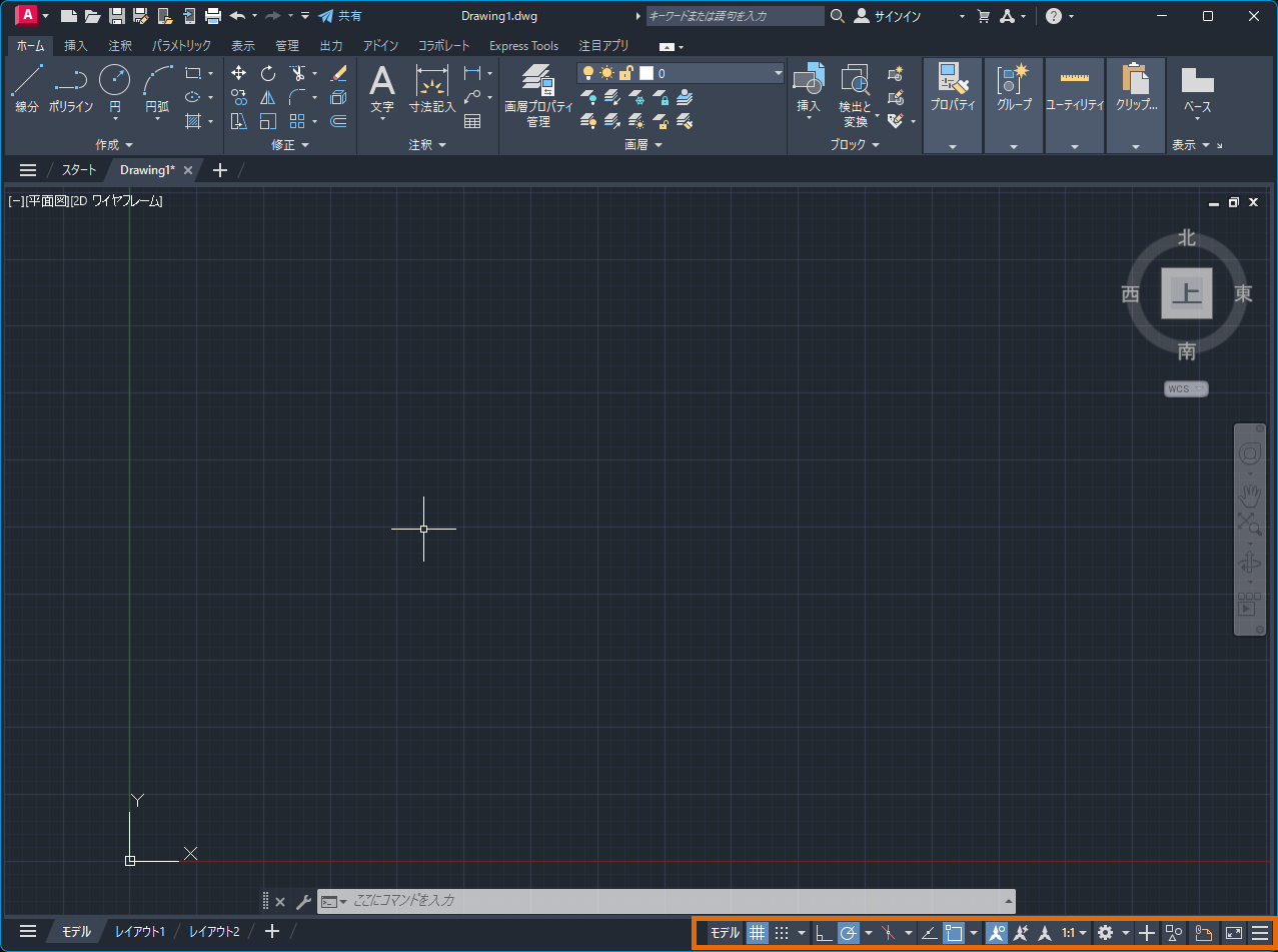 ステータス バーには、カーソルの位置、作図ツール、および作図環境に影響を与えるツールが表示されます。