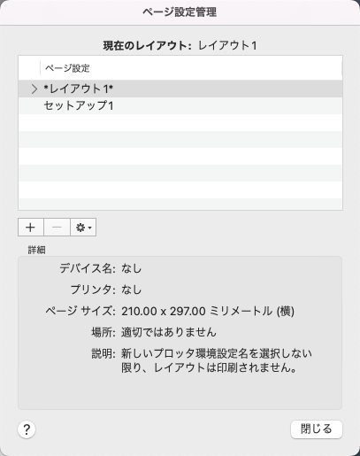 現在のレイアウトに適用できるページ設定が一覧表示されます。