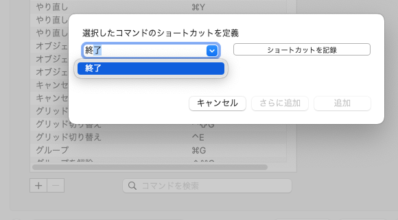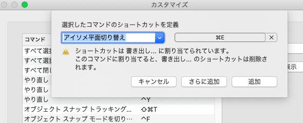 注: ショートカット キーが他のコマンドに既に割り当てられている場合、そのショートカット キーを使用しているコマンドを示す警告が表示されます。