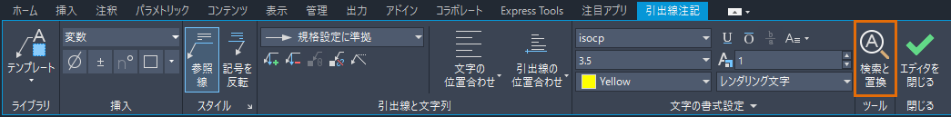 システム変数 AMNOTEFIND に値 0、1、または 2 を指定すると、インプレイス エディタ モードと外部エディタ モードの両方で、ユーザ定義注記や式から派生した注記の文字を検索および置換できます。