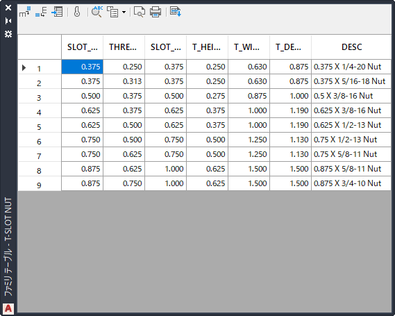 概要 - 使用可能なサイズをファミリ テーブルで定義する(AutoCAD Mechanical ツールセット)