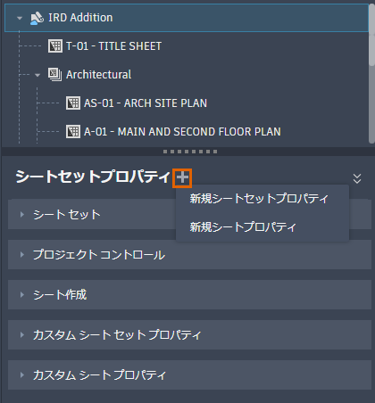 をクリックして新しいシート セットまたはシートのプロパティを作成します。