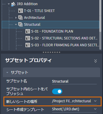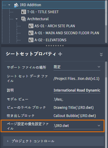 - シート セットのプロパティは、通常、 プロジェクトに固有です(契約番号など)。
