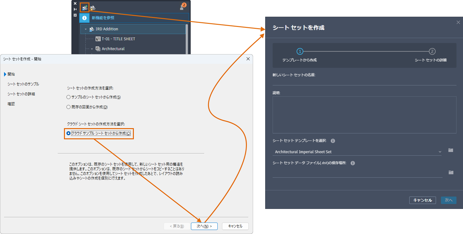 Autodesk Docs のシート セットを参照するには、次のいずれかを行います。