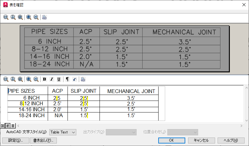 表の中のラスター文字を AutoCAD の 1 行文字に変換する