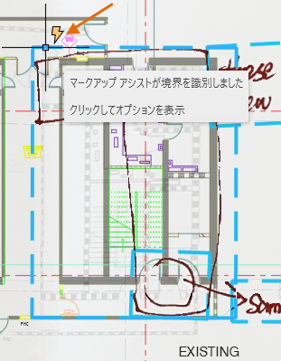 マークアップ アシストは、トレース背面でのみ使用できます。これにより、読み込んだマークアップに基づいて、図面ジオメトリを更新または挿入できるようになります。