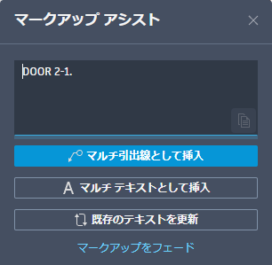 現在の文字スタイルを使用してマルチ テキストが挿入され、マークアップは自動的にフェード表示されます。