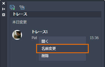 読み込んだマークアップを含むトレースを終了しても、いつでも戻ることができます。読み込んだマークアップを含むトレースに戻る前に、内容が簡単にわかるように名前を変更しましょう。