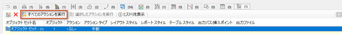 - [すべてのアクションを実行]ボタンまたは[選択したアクションを実行]ボタンをクリックした直後に、「[出力ヒストリ]ウィンドウで結果を確認する」オプションを受け入れる。