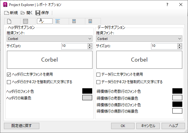 [フォント オプション]タブで、推奨フォントを[Corbel]に、フォント サイズを 10pt に設定します。