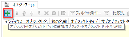 - メインの Project Explorer ウィンドウの [オブジェクト セット] タブで、 [オブジェクトをオブジェクト セットに追加/オブジェクトをオブジェクト セットから削除] ボタンをクリックします。