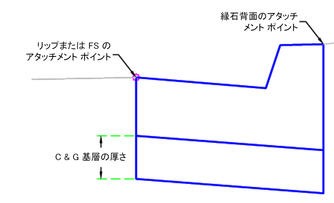 アタッチメント ポイント 縁石または縁石と側溝のアタッチメント ポイント リップまたは FS/縁石の背面 リップまたは FS