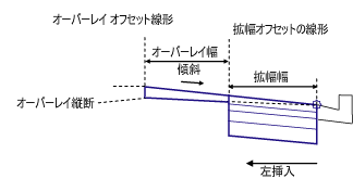 [拡幅幅]の固定値を変更し、拡幅の内端と線形を繋ぐ場合に使用します。このオフセットを指定するターゲットとして、線形、ポリライン、計画線、および測量図形の各オブジェクト タイプが使用できます。 |