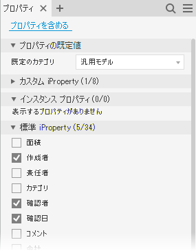 プロパティ グループ ラベルには、エクスポート用に選択されたプロパティの数と、エクスポート可能なプロパティの総数が表示されます。たとえば、カスタム iProperty (3/18)は、18 個のカスタム iProperty の使用可能なリストから選択された 3 つのプロパティを示します。