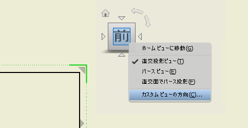 図面でビューをダブルクリックして、そのビューの ViewCube にアクセスします。ViewCube を右クリックし、[カスタム ビューの方向]をクリックします。