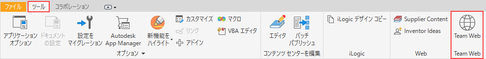 [ホーム]の[ツール]タブの[Team Web]パネルから。