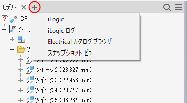 [スナップショット ビュー]パネルには、独立したスナップショット ビューとリンクされたスナップショット ビューの両方が表示されます。[スナップショット ビュー]パネルが表示されない場合は、モデル ブラウザのタイトル バーにある「+」記号をクリックするとアクセスできます。