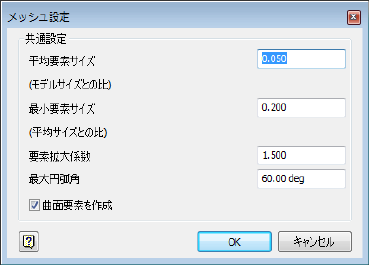 [メッシュ設定]を使用して、[平均要素サイズ]、[最小要素サイズ]、[要素拡大係数]、[最大円弧角]を手動でコントロールします。