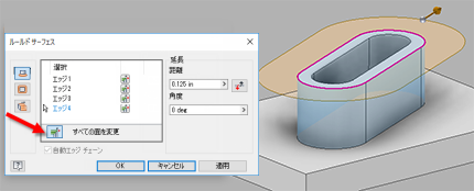 複雑なサーフェスに延長を追加したり、パーティング面を作成したり、方向ベクトルに沿って勾配面を追加するには、ルールド サーフェスを作成します。