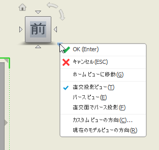 ビュー タイプを変更したり、ビューの方向をカスタマイズするには、ViewCube の上にカーソルを置き、下矢印をクリックしてメニューを展開し、次のいずれかを選択します。