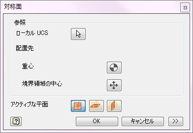 UCS と対称面をパーツの境界領域の中心に配置するには、 [境界領域の中心] ボタンをクリックします。