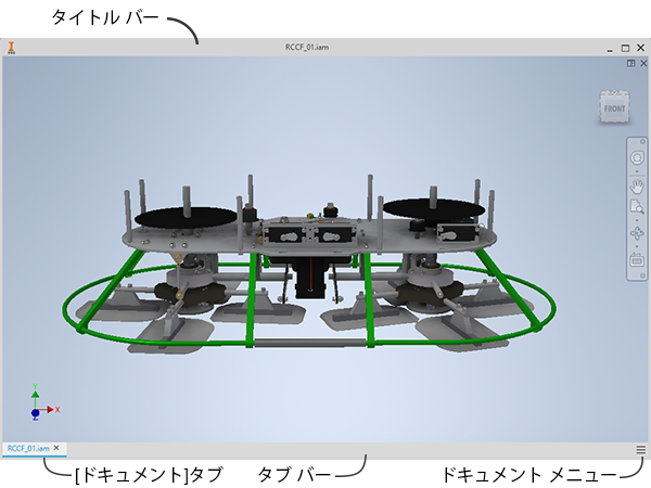 Inventor アプリケーション ウィンドウは、1 つまたは複数の Inventor ドキュメントが含まれているウィンドウです。