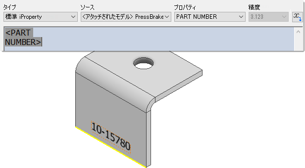 スケッチ テキストで iProperty 値を使用して、iProperty 値に関連付けられたマーク フィーチャを作成することができます。