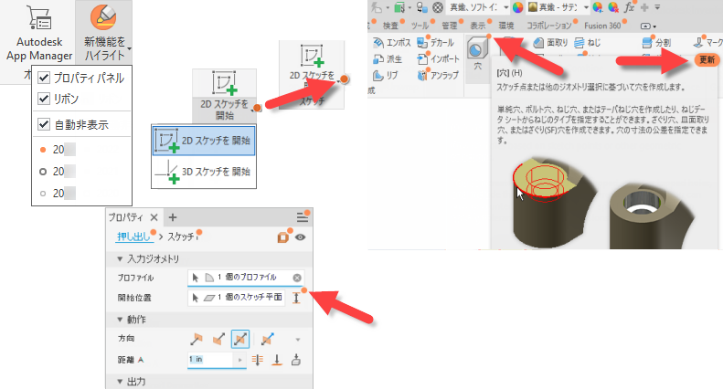 [ツール]タブ [オプション]パネルで、 [新機能をハイライト]