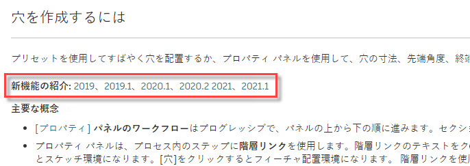 新しく追加および更新されたコマンドのコンテンツ ページには、「新機能」トピックへのリンクが表示されます。このリンクでは、関連する変更により影響を受けたリリースが表示されます。