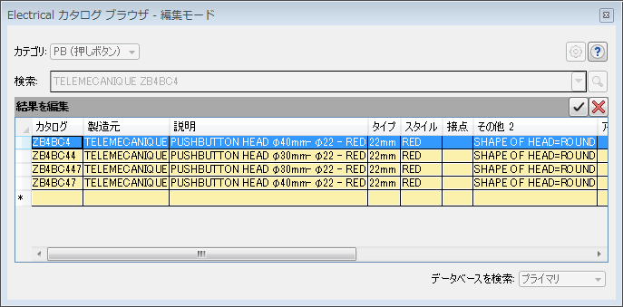 Electrical カタログ データベースからパーツを挿入したり、カタログ データベースを編集します。