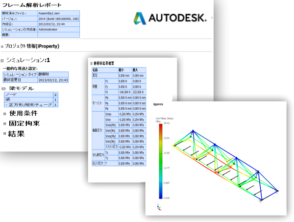 解析の結果は、レポートをパブリッシュするか、DWF 形式でモデルをパブリッシュする方法のいずれかで共有することができます。また、フレーム解析データを RTD 形式に書き出すこともできます。