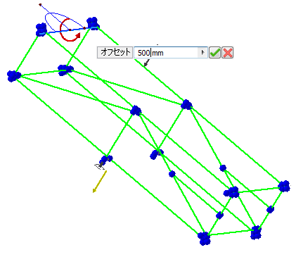 荷重を定義する際にも、同様のインタラクティブな方法が使用されます。HUD は、現在選択されているグリップに常に対応します。特定のパラメータの正確な値を直接入力します。オフセットを絶対値または相対値を使用して定義します。