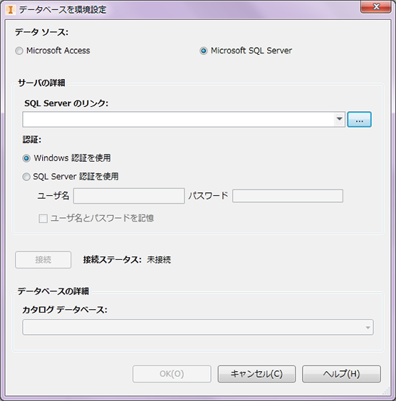 カタログ情報のソース用データベースのタイプを指定します。