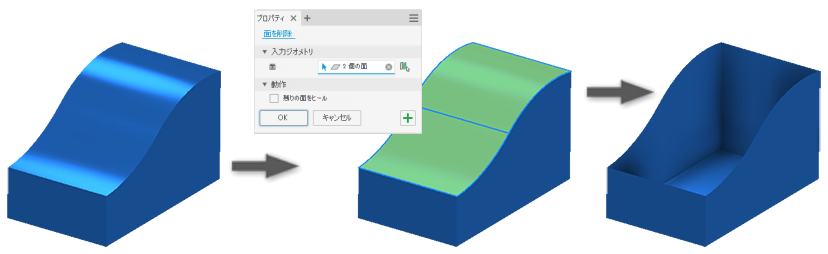 削除する 1 つまたは複数の面を選択します。面を事前選択して、コマンドをアクティブにすることができます。