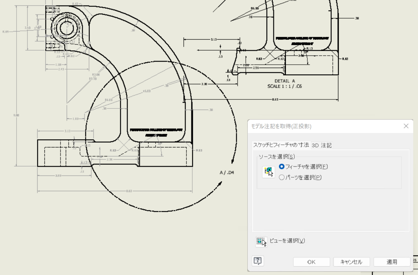 これまで、ビューを配置してから削除しても、詳細の番号付けは途切れることなく続いていました。しかし現在は、最後の断面図、詳細図、補助投影ビュー(複数の場合も含む)を削除した場合、新たに配置するビューのラベル(A、B など)は、図面内の最後のビュー ラベルから続くように調整されます。