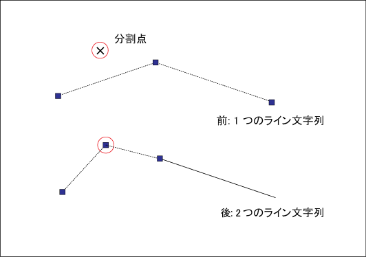 線の処理例: 線の分割で 2 つのライン フィーチャが作成されます。