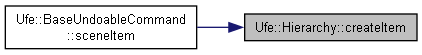 Convenience method that calls the createItem method on the hierarchy handler for the item. Note that this method does not create an object in the runtime; rather, it creates a UFE scene item for an existing runtime object. Returns a null pointer if the argument is an empty path.