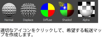 カラーまたは法線マップにアルファ チャネルを追加するには、「マップの転写を使用してテクスチャ マップを作成する」を参照してください。