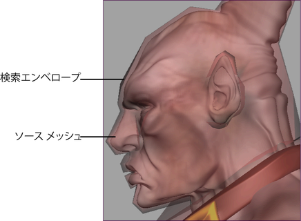 エンベロープの外側のターゲット メッシュを検索します。