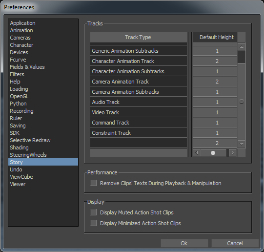Preferences ウィンドウで Story プリファレンス オプションをクリックします。