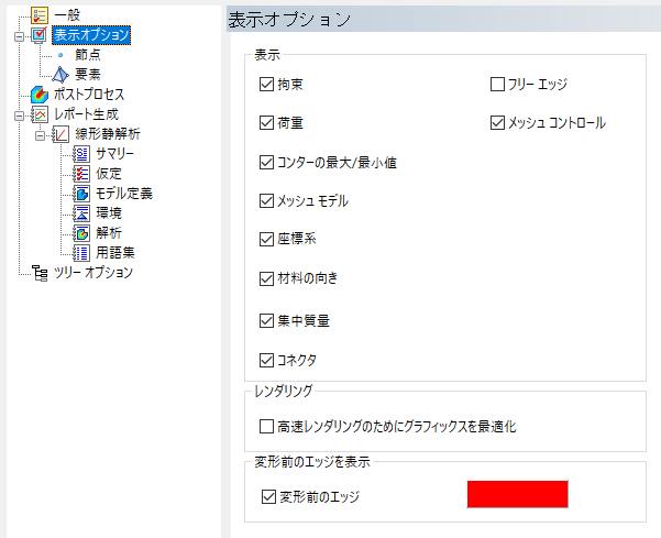 一部のプログラム設定はグローバルです。すべてのモデルの動作に影響します。チュートリアルの作成時点では次の既定の設定が有効になっています。チュートリアルの手順の有効性を確保するには、下に示す設定を維持する必要があります。これらの設定にアクセスするために、まず Autodesk Inventor Nastran の環境に入ります([環境]