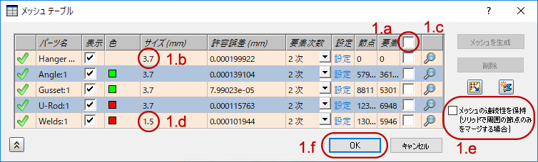 - [OK]をクリックして設定値を確定し、[メッシュ テーブル]ダイアログ ボックスを閉じます。
