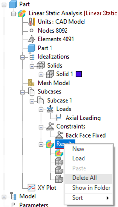 モデルの解析後に、各サブケースの結果が自動的にロードされます。