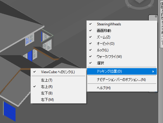 ナビゲーション バーには、モデル内でのインタラクティブ ナビゲーションおよび方向設定に関するツール(Autodesk® ViewCube®、SteeringWheels、3Dconnexion® および 3D マウスを含む)が用意されています。