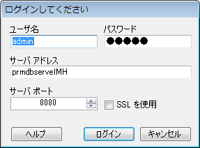 Primavera のログイン ダイアログ ボックスが表示されたら、ユーザ名、パスワード、およびサーバ アドレスを入力します。