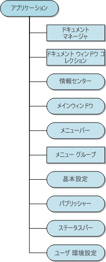 Application オブジェクトは、AutoCAD .NET API のルート オブジェクトです。Application オブジェクトから、メイン ウィンドウと開いているすべての図面にアクセスすることができます。図面から、図面内のオブジェクトにアクセスすることができます。