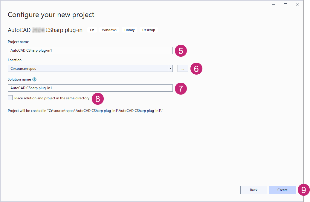 - [テンプレート]リストで、[AutoCAD <リリース> C Sharp Plug-in] (または[AutoCAD <リリース> VB Plug-in])を選択します。