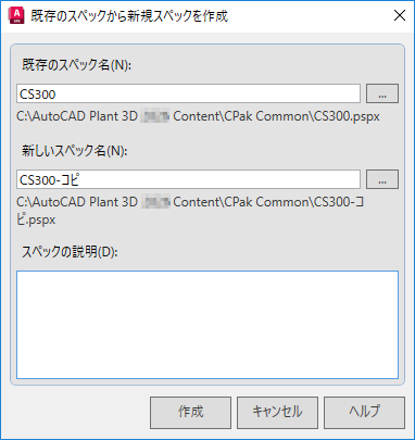 [既存のスペックからスペックを作成]ダイアログ ボックス