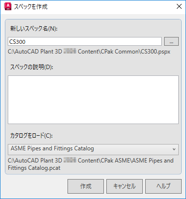 新しいスペックのファイル名を指定します。